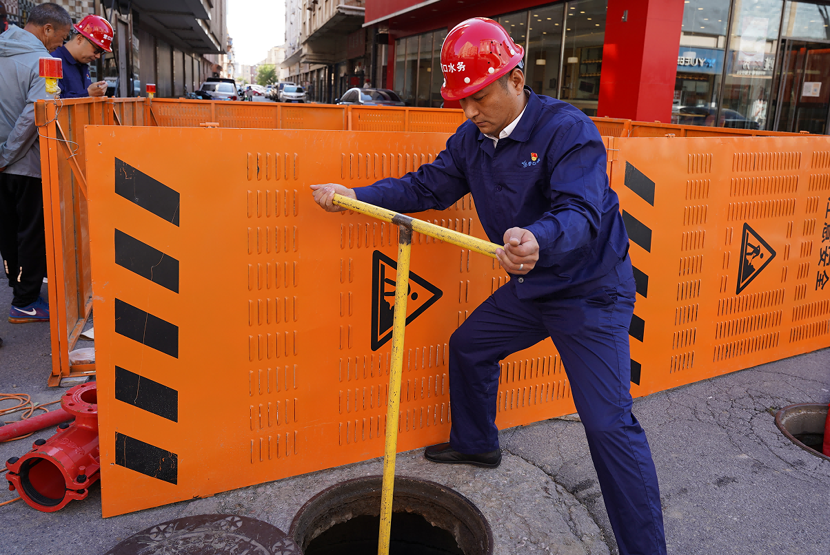 在大型管網(wǎng)改造過(guò)程中,一些交通樞紐地點(diǎn)車輛人員流動(dòng)性較大,為保證施工安全,他都主動(dòng)同施工隊(duì)標(biāo)識(shí)出施工作業(yè)區(qū)域、安全防范區(qū)域、管材物料堆放區(qū)域,監(jiān)督施工單位設(shè)立警示圍擋夜間警示燈等安全警示標(biāo)志;他嚴(yán)把審核關(guān),督促施工人員穿好警示服,戴好安全帽,管線溝槽內(nèi)是否設(shè)立安全防護(hù)支撐,發(fā)電機(jī)組設(shè)備是否安全運(yùn)行,排水管線的設(shè)立,吊裝設(shè)備的安全檢查,周邊圍觀人群的勸離,作業(yè)完畢后,做到場(chǎng)清料凈。