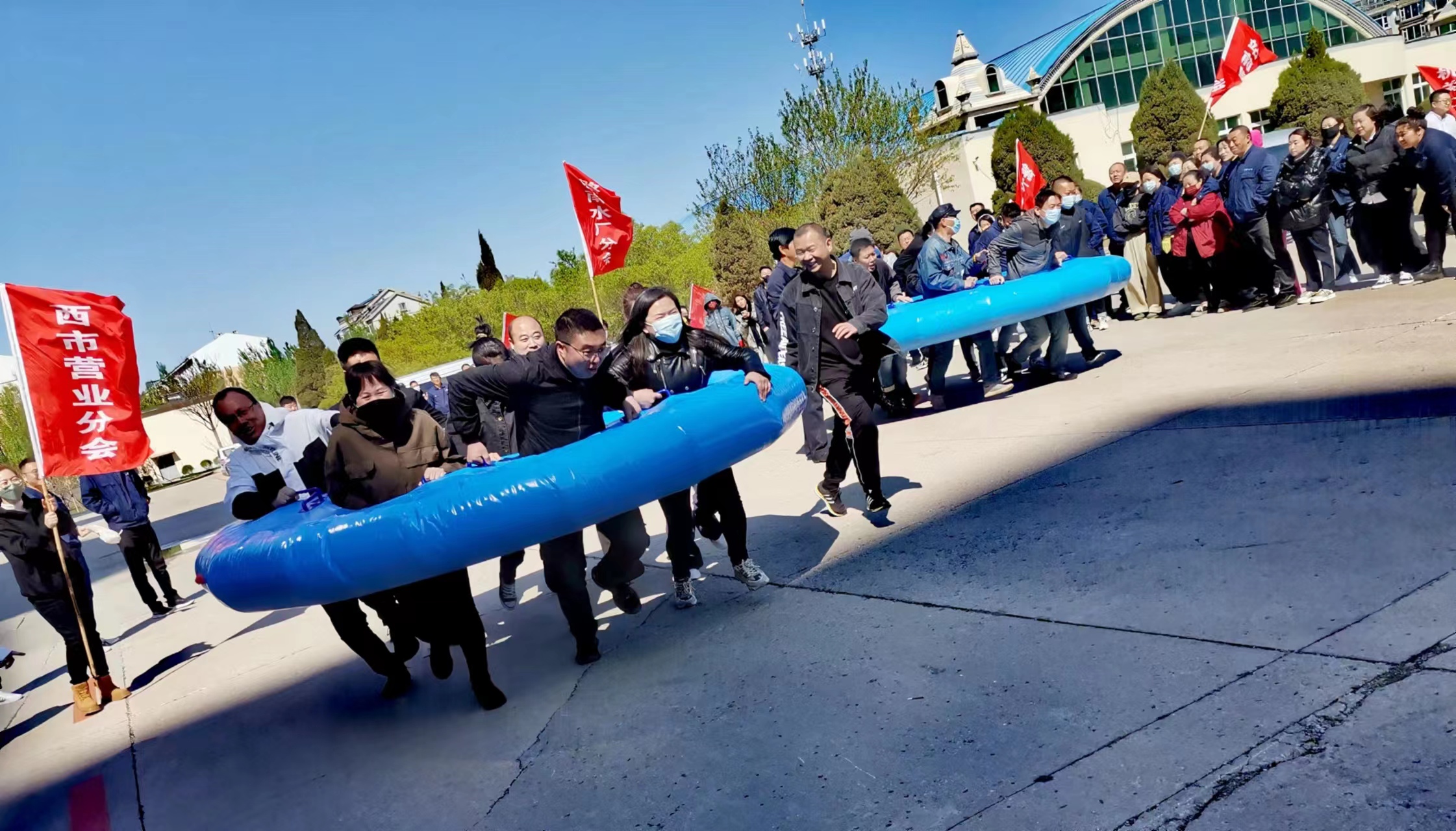 4月26日上午8:20分,集團公司領(lǐng)導(dǎo)與基層工會干部和會員近500人,集聚于公司樓前廣場,相繼展開了“眾人劃槳開大船”和“八仙過海”兩項趣味性團體拓展活動,寓意和引導(dǎo)眾人心往一處想、勁往一處用,以默契的團隊協(xié)作攻堅克難。