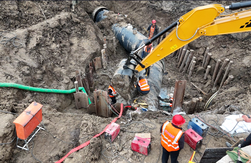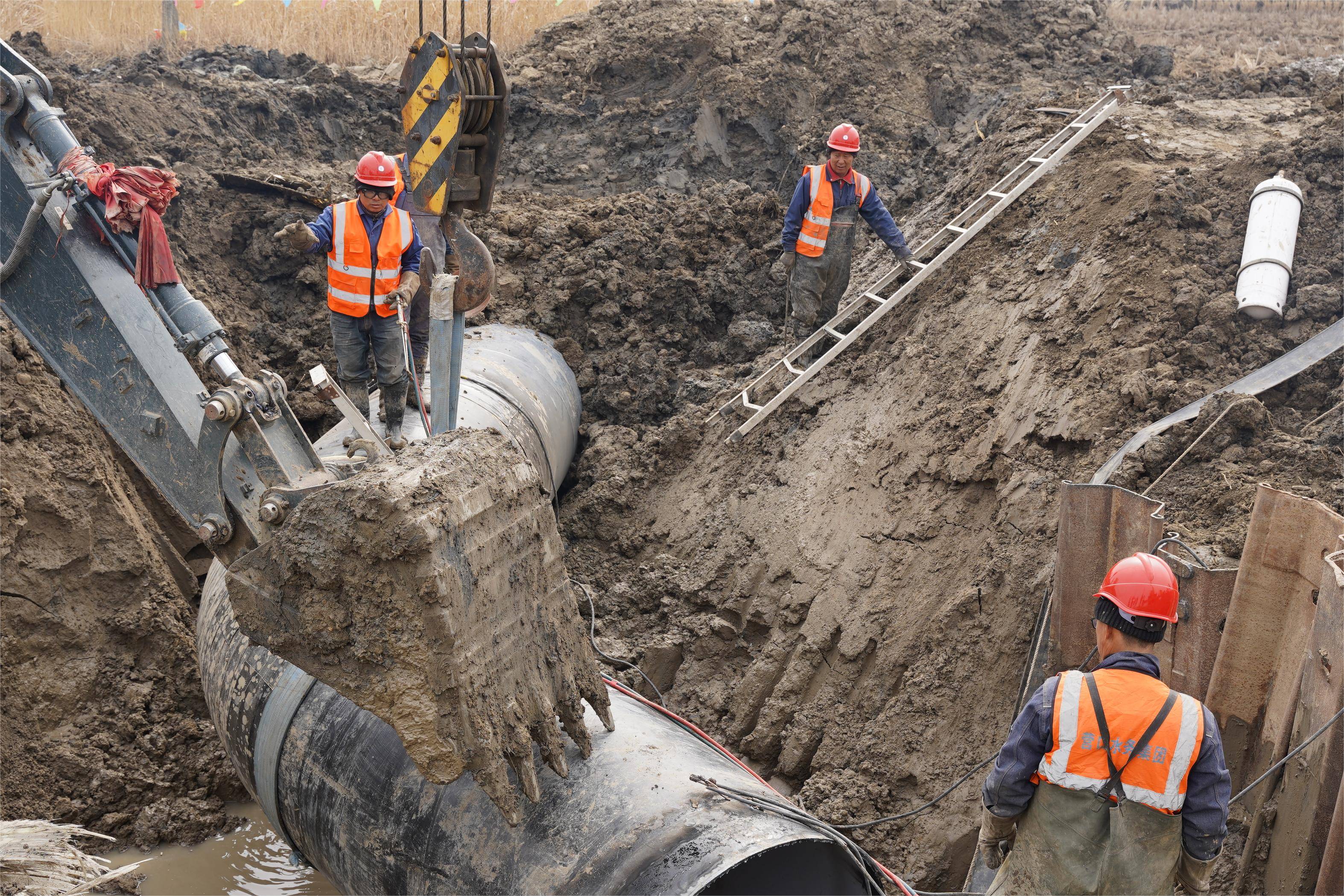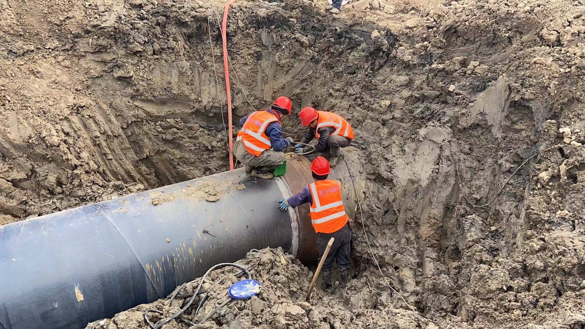3月26日清晨6點,維修作業(yè)準時拉開帷幕。此次作業(yè)面臨著不小的挑戰(zhàn),待遷移的DN1400管線口徑大,且由玻璃鋼管與螺紋鋼管兩種不同材質管材連接而成,這無疑增加了施工難度。尤其是在轉換件連接環(huán)節(jié),對口精確度的要求近乎苛刻,稍有偏差就可能導致膠圈翻折,影響供水安全。面對這一難題,經(jīng)驗豐富的作業(yè)人員憑借精湛的技藝和高度的專注,嚴格把控每一個施工細節(jié)。
