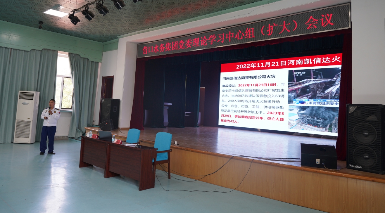 5月19日,營(yíng)口水務(wù)集團(tuán)召開黨委理論學(xué)習(xí)中心組(擴(kuò)大)會(huì)議暨消防安全集中整治動(dòng)員部署會(huì)議。集團(tuán)領(lǐng)導(dǎo)班子成員、中層管理人員及各單位班組長(zhǎng)、安全員160余人參加會(huì)議。